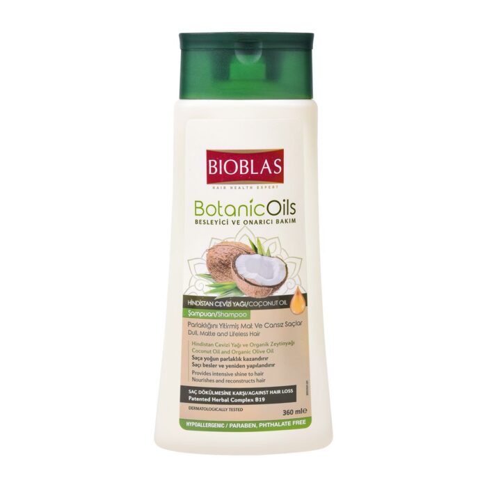 Hranljivi šampon protiv opadanja za beživotnu i kosu bez sjaja BIOBLAS Kokosovo i maslinovo ulje 360ml