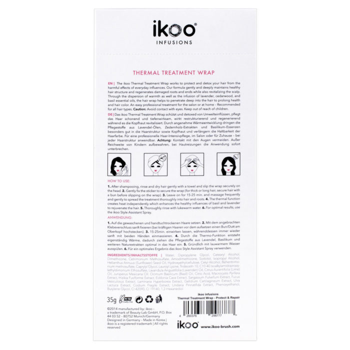 Ikoo termalna maska – tretman za kosu je inovativna formula koja nežno i dubinski održava zdravu strukturu kose i regeneriše oštećeni koren i krajeve, uz revitalizaciju kože glave. Maska pruža optimalnu negu kose i uklanja posledice atmosferskih oštećenja kose. Toplotni efekat i kombinacija ulja omogućavaju tretmanu dubinsko prodiranje u kosu.